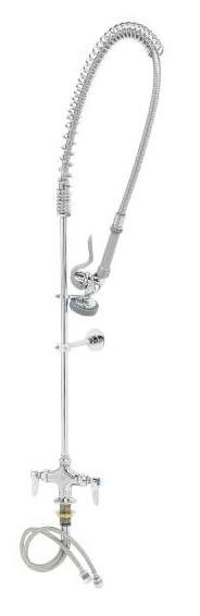 Robinet mélangeur sur support à trou unique avec corps en laiton chromé poli, colonne montante de 24 po, tuyau flexible de 44 po en acier inoxydable avec poignée résistante à la chaleur, pulvérisateur de 1,15 gallons par minute, cartouches de compression avec clapets à ressorts, manettes à volant, tuyaux d’alimentation flexibles de 18 po en acier inoxydable avec connecteurs de compression de 1/2 po NPSM/5/8 po, support mural réglable de 6 po, support de pulvérisateur et ressort aérien. Certifié ASME.