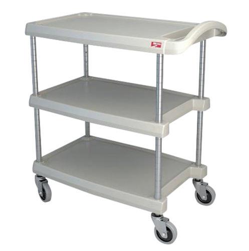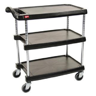 La poignée du chariot est dotée d’un canal de support encastré pour gérer les articles de forme irrégulière. La taille idéale pour les casiers à verres et à vaisselle, les bacs de rangement, les bacs à argenterie et les caisses à lait. Produit antimicrobien Microban intégré et protection contre les allergènes. Montants chromés. Roulettes pivotantes non marquantes de 4 po. Capacité de 150 lb par étagère. Disponible en gris (G) et noir (BL).