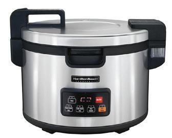 Ce cuiseur à riz comprend un couvercle en acier inoxydable et présente une capacité généreuse de 23 tasses. Le récipient intérieur est en alliage d’aluminium et est amovible pour un nettoyage facile. Il est équipé d’un coupe-circuit de sécurité thermique intégré et d’un arrêt automatique pour plus de sécurité. Conserve le riz au chaud pendant 2 heures. Il est certifié ETL et conforme à la norme UL-197. Certifié CSA et NSF.