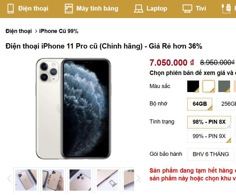 iPhone 11 Pro cũ: Khoảng 6,8 - 8 triệu đồng (tùy thuộc vào dung lượng và tình trạng máy).