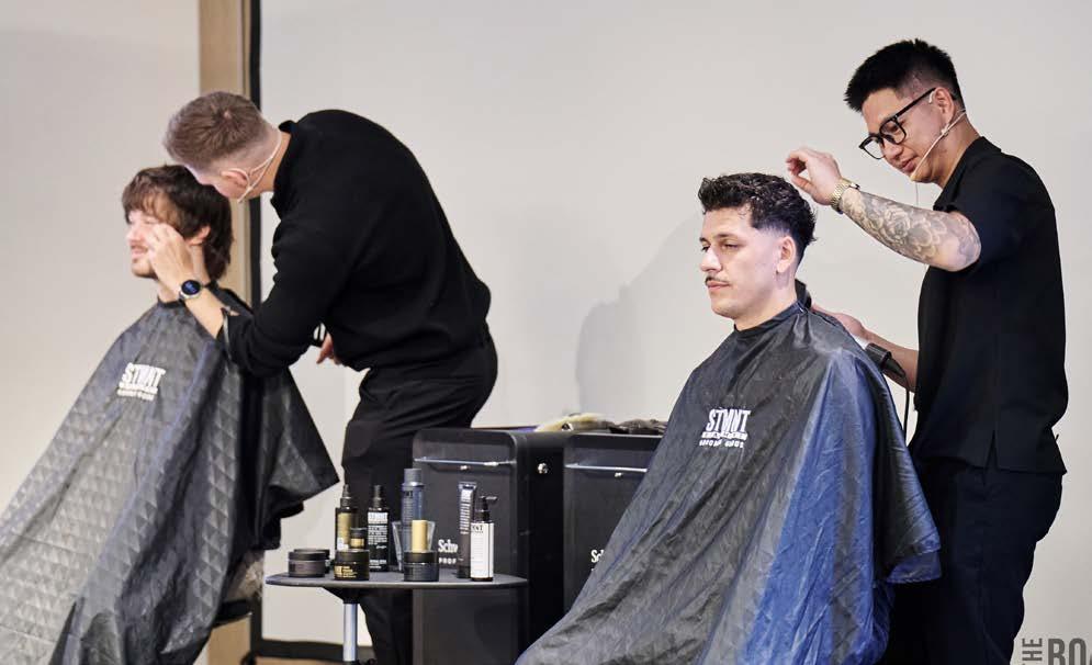 Aamu käynnistyi lempeällä tuolijoogalla, jota veti myyntiedustaja Marko Törmä. Päivän aikana koulutus jatkui: myyntitiimistä Päivi Korelin ja Sari Heiskanen avasivat kampaamon toimintaa markkinoinnin näkökulmasta, ja lopuksi Jani Valkeakari ja Thang Nquen pitivät parturointikoulutuksen, jossa asiakkaille esiteltiin kaksi parturileikkausta.