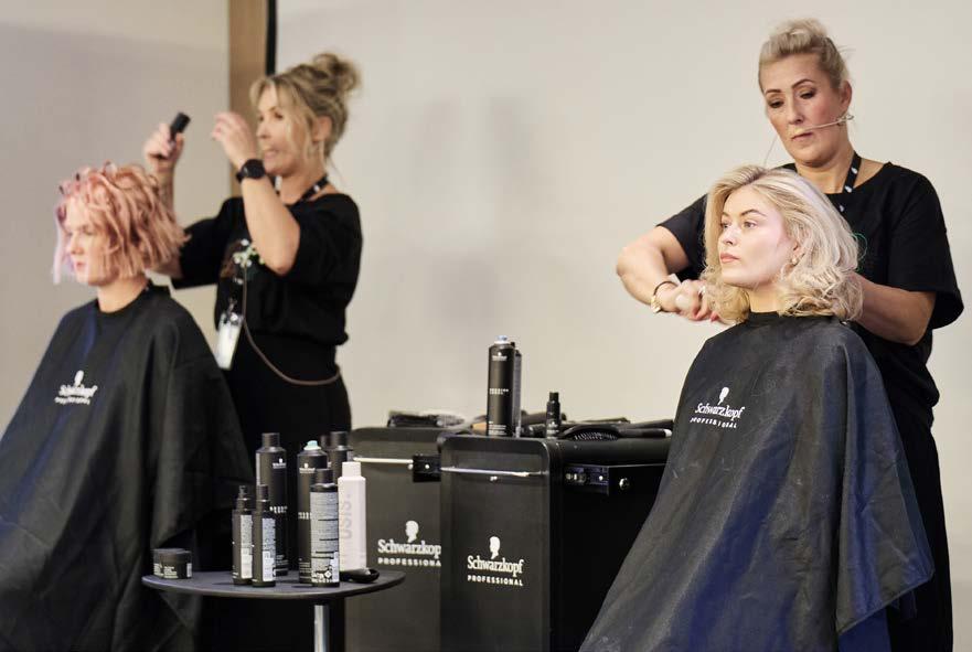 Ensimmäisenä päivänä kouluttajat Niina Okkonen ja Sini Pieviläinen johdattivat osallistujat värireseptien maailmaan – myös asiakkaat pääsivät itse kokeilemaan reseptien luomista. Laura Kurkinen ja Maria Isotalo esittelivät puolestaan kiharoiden ja viimeistelyjen saloja neljän mallin avulla.