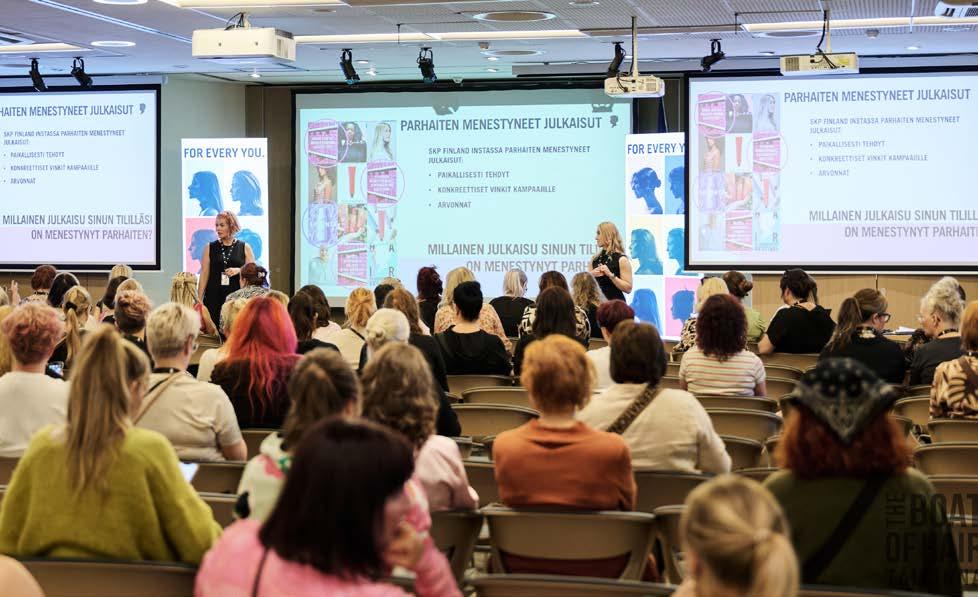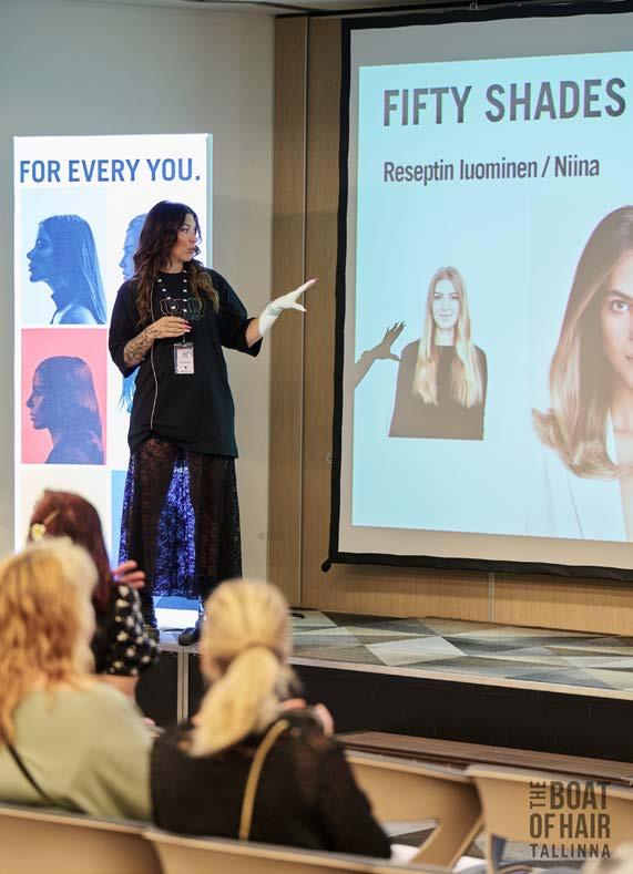 Under den första dagen guidade utbildarna Niina Okkonen och Sini Pieviläinen deltagarna genom färgreceptens värld – och kunderna fick också själva prova på att skapa recept. Laura Kurkinen och Maria Isotalo visade upp hemligheterna bakom lockar och finish med hjälp av fyra modeller.