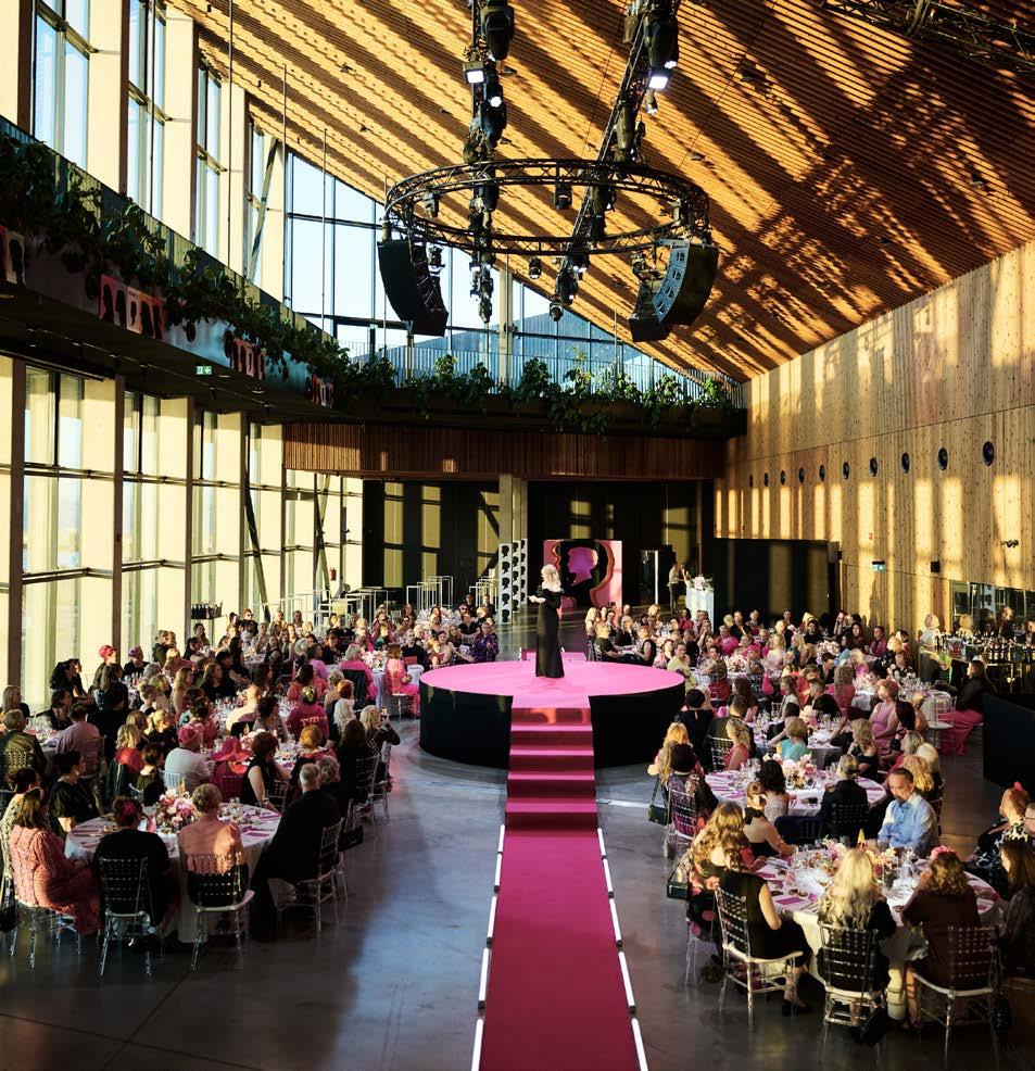 Resan avslutades effektfullt med en festlig rosa matta, varefter gästerna bjöds på en trerätters middag och fina framträdanden mellan rätterna. Bland de gästande stjärnorna på scenen fanns Arts Helsinkis ägare Linda Lehto och Schwarzkopf Pro Finlands utbildningsteam. Den rosa temafärgen gav festen en energisk atmosfär och återkom både i dekorationerna och kundernas klädsel.