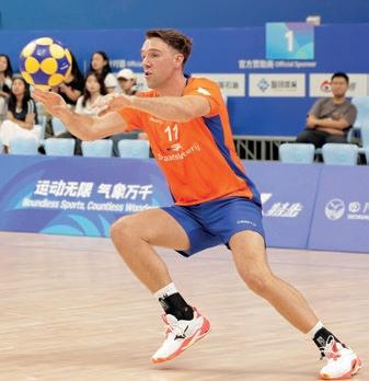 Hij werkt sinds kort samen met zijn vader Erwin bij Van Wijngaarden Elektrotechniek in Papendrecht. Olav van Wijngaarden (29) is ook aanvoerder van het Nederlands korfbalteam. Henk en Daan zochten hem op.