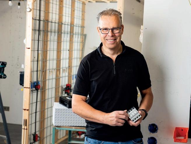 straal water uit de tuinslang. Daarnaast voldoet het aan de norm IK07 voor stevigheid en slagvastheid. Ook fijn voor schakelmateriaal in openbare ruimtes, waar veel mensen komen. Het kan echt een stootje hebben.” Voor bijzondere situaties, zoals in de agrarische sector, zijn de producten ook ammoniakbestendig. “Ammoniak eet plastic op. In varkensstallen kan dat aan de orde zijn, bijvoorbeeld. Dit schakelmateriaal is daartegen bestand.”