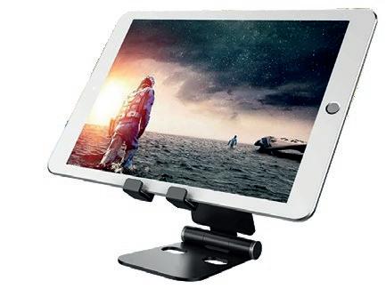 Deze opvouwbare telefoon- of tablethouder is flexibel instelbaar, heeft een anti-kras voetplaatje en aan de achterkant een praktische opening waar een oplaadkabel doorheen past. Het ontwerp is stevig, van aluminium. De houder zorgt ervoor dat je je handen vrij hebt, als je naar de telefoon of tablet kijkt. Handig en makkelijk, dus.