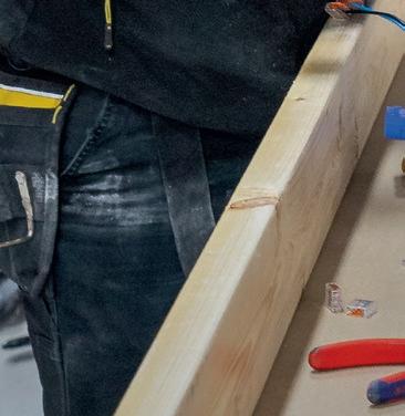 kant-en-klare modules de oplossing bieden. En je werkt in de fabriek altijd onder dezelfde omstandigheden, waardoor de kwaliteit toeneemt. Bijkomend voordeel is dat je voor sommige fabriekshandelingen minder geschoolden kunt inzetten. Dat is een oplossing voor het tekort aan vaklieden. Desondanks is het werk hier heel uitdagend. Iedereen mag ook meedenken over de productie en verbeteringen aandragen. Daar doen we echt wat mee. We verwerken alle leerpunten meteen in onze database. Daarmee leren we van iedere woning en die verbeterslagen past onze architect steeds weer toe in onze nieuwe woningen.”
