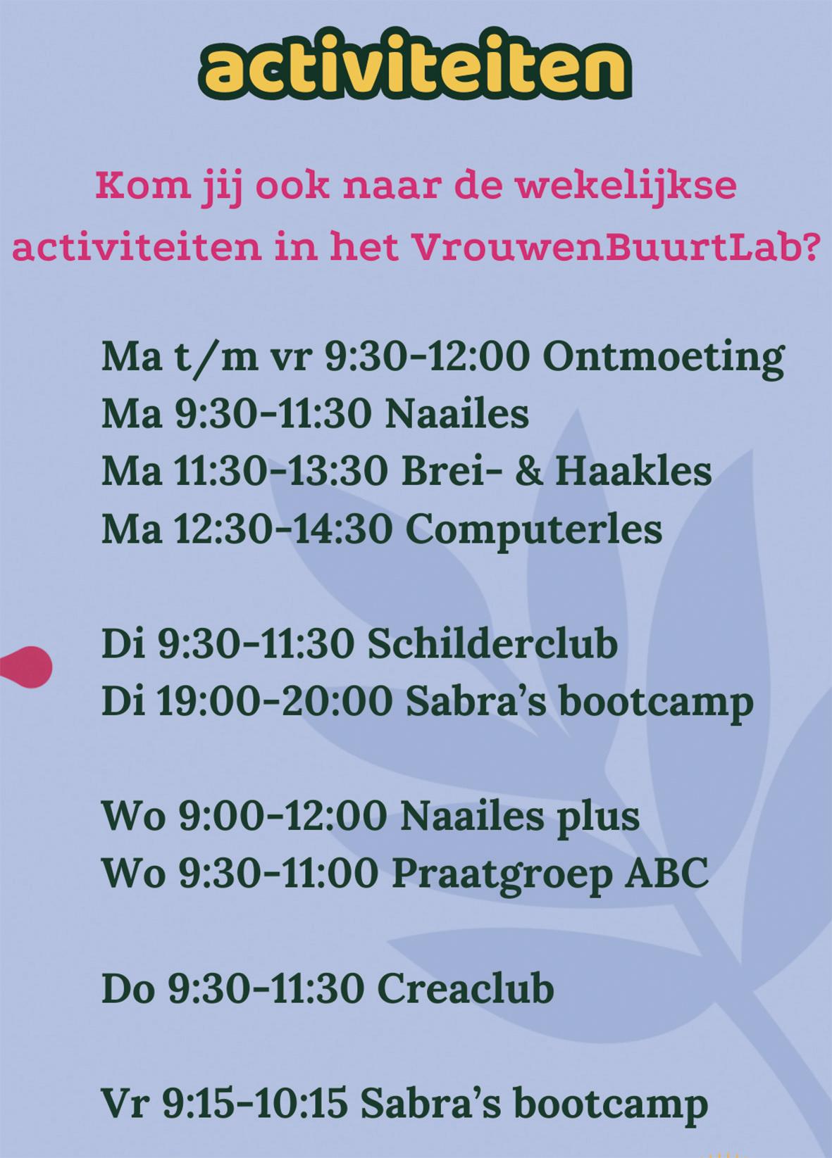 Bent u benieuwd naar alles wat wij doen of wilt u meer weten over andere activiteiten in de wijk. Schroom niet om een keer bij ons binnen te lopen.