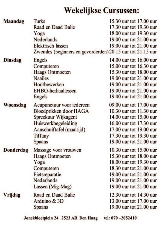 Bibliotheek Laak: https://www.bibliotheekdenhaag.nl/bibliotheken.html Vadercentrum Adam: https://haagsevaders.nl/agenda-overzicht-activiteiten Uitagenda Den Haag: https://denhaag.com/nl/agenda