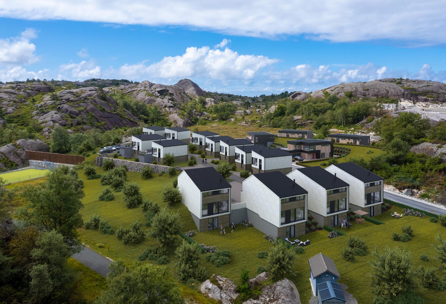 Enebolig under oppføring i Øvre Leidlandshagen på Eigerøy i Egersund. En praktisk, moderne enebolig på to etasjer, med stor åpen kjøkkenløsning, tre gode soverom, stort bad og gjestetoalett, carport med sportsbod og ikke minst en takterasse på 32,2m2! Adresse Potteriveien 107.