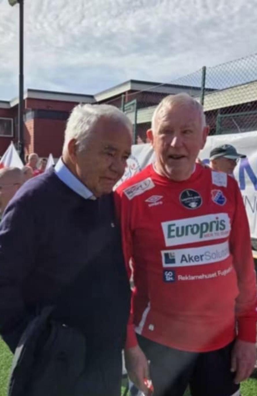 Einar Ragnvald Løyning (t.h.) er ny Eiger-trener. Her står han sammen med sportslig leder i klubben, Kjell Garpestad.