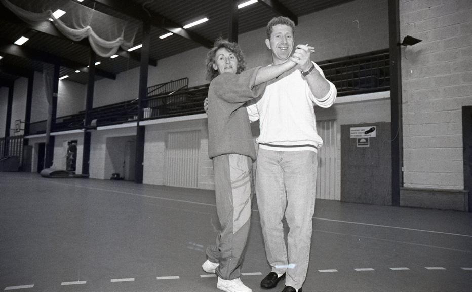 Leder for voksentreffene Ivar Inge Sæstad tar seg en svingom med Turid Helland til ære for fotografen Foto: Dalane Tidende