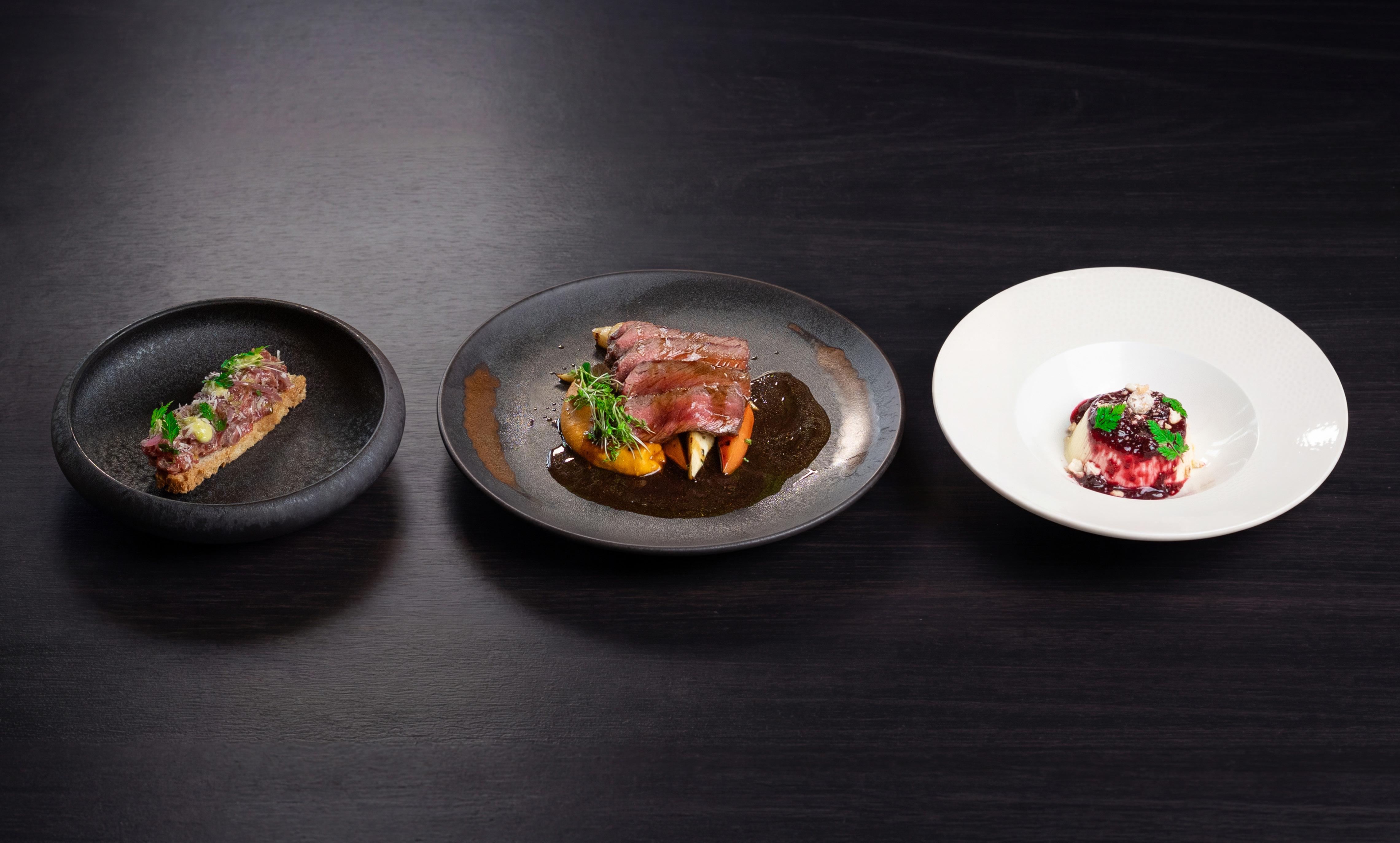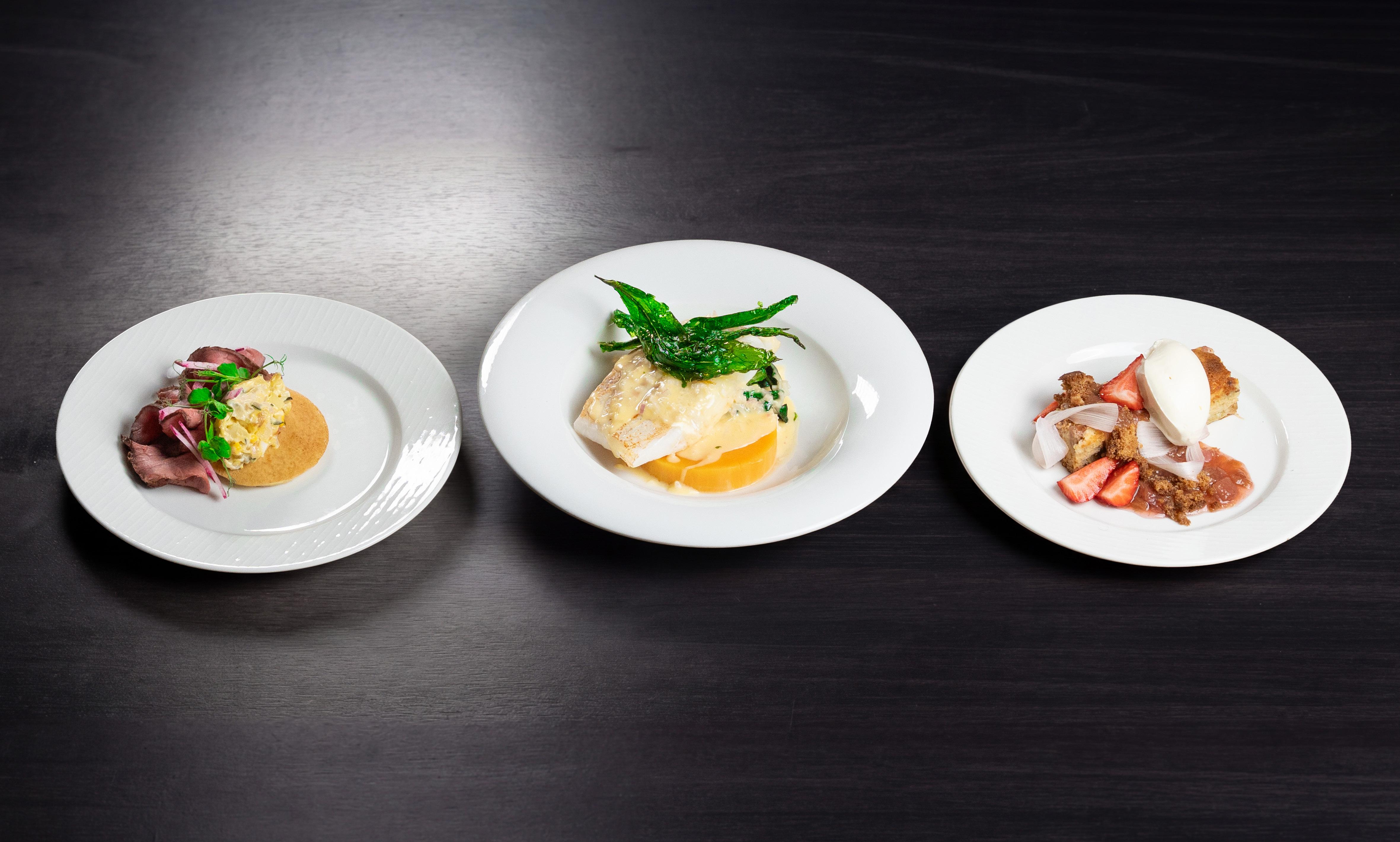 Merk at vi denne gangen serverer en tre-retters meny uten dessert – bestående av forrett, mellomrett og hovedrett.