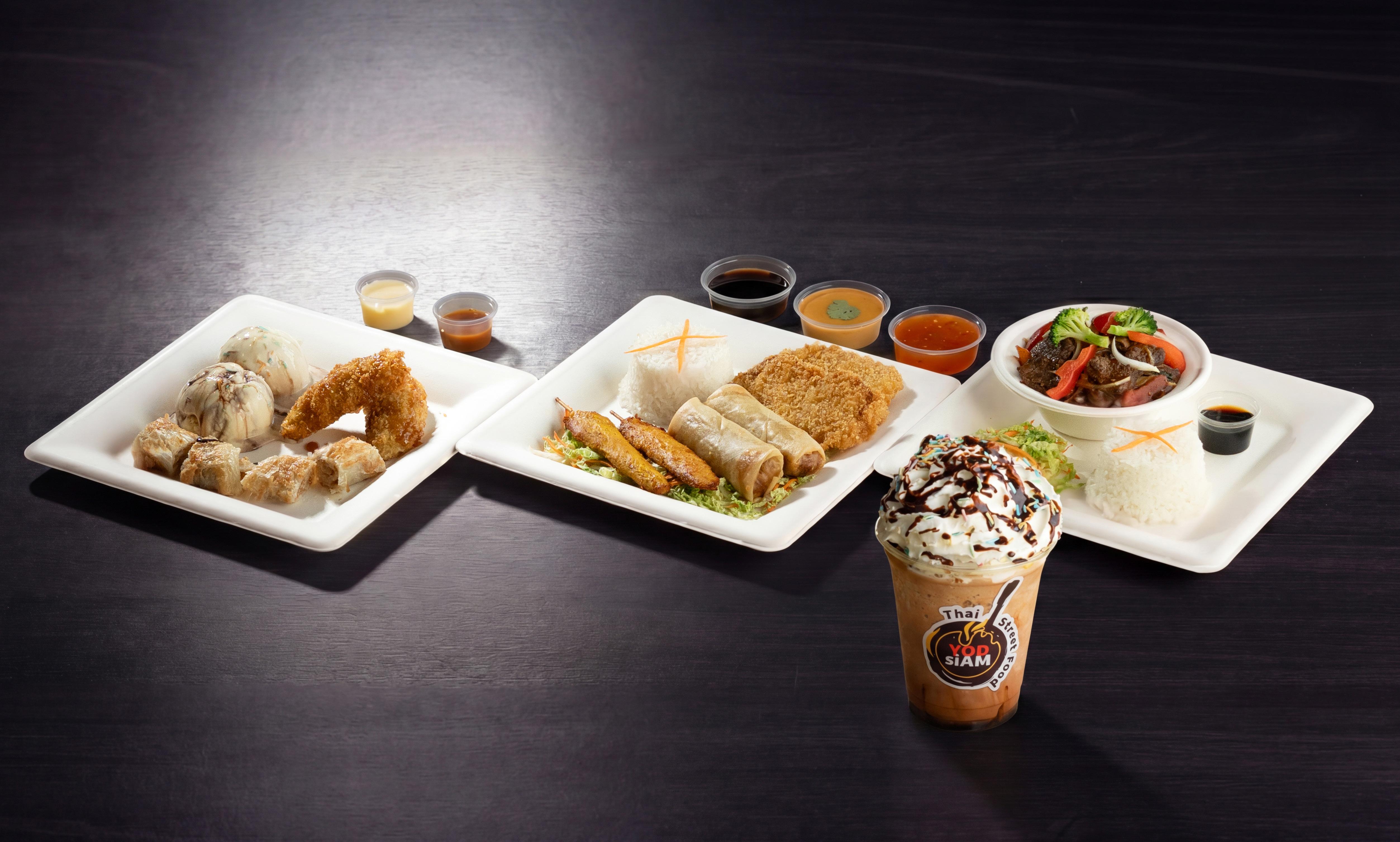 Frityrstekt banan, roti (tynn pannekake) og is, servert med milkshake, laget med blanding av jordbær, mango, sjokolade, thai-te, grønn te, kaffe og vanilje.