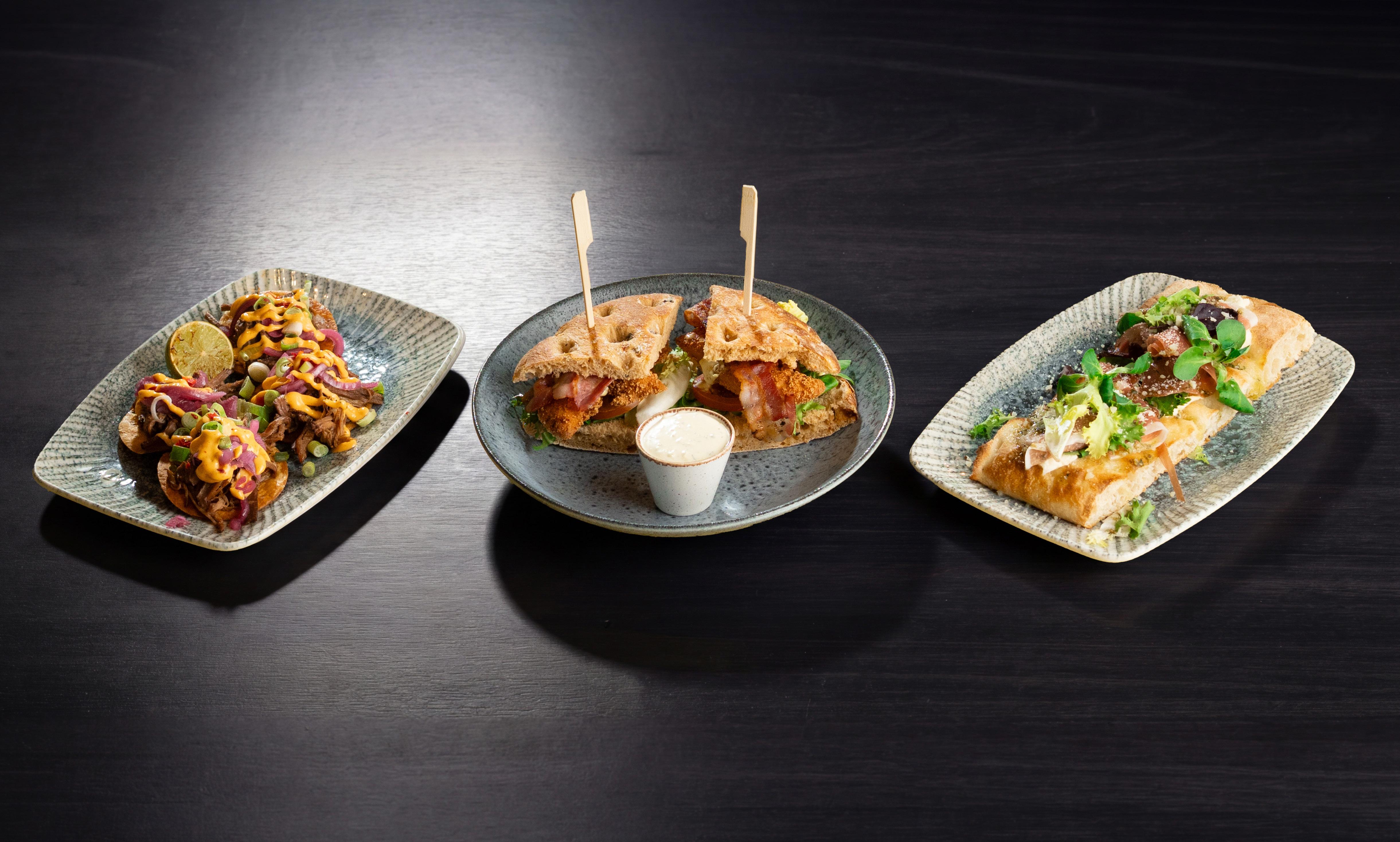 Nystekte minilapper servert med kremet potetsalat med marinade og purre, toppet med saftig roastbiff fra Nyyyt.