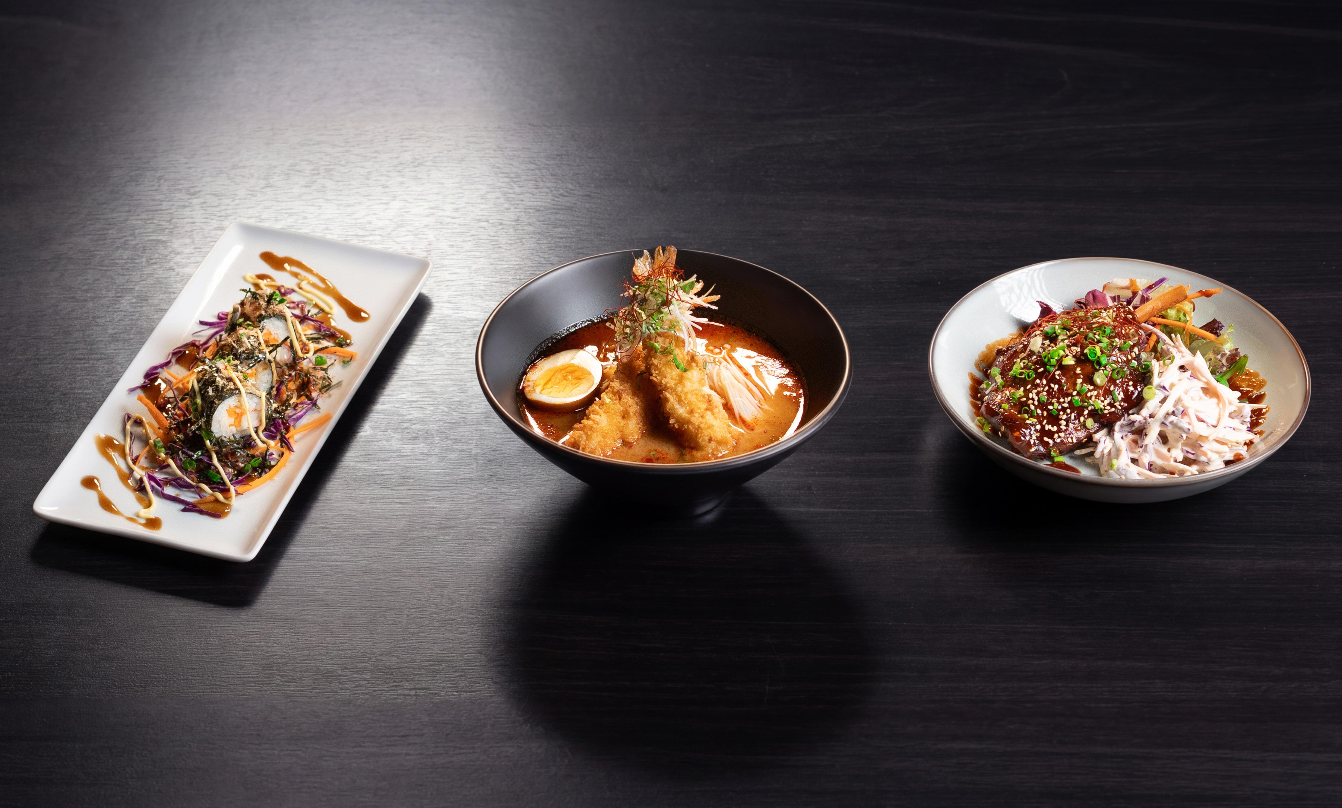 Syrlig ramen med scampi, egg, vårløk, parsley og sopp
