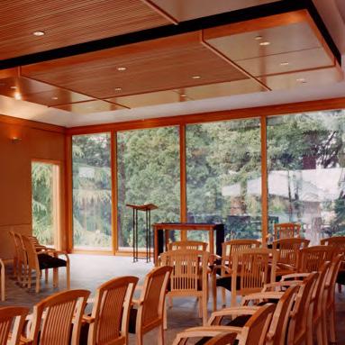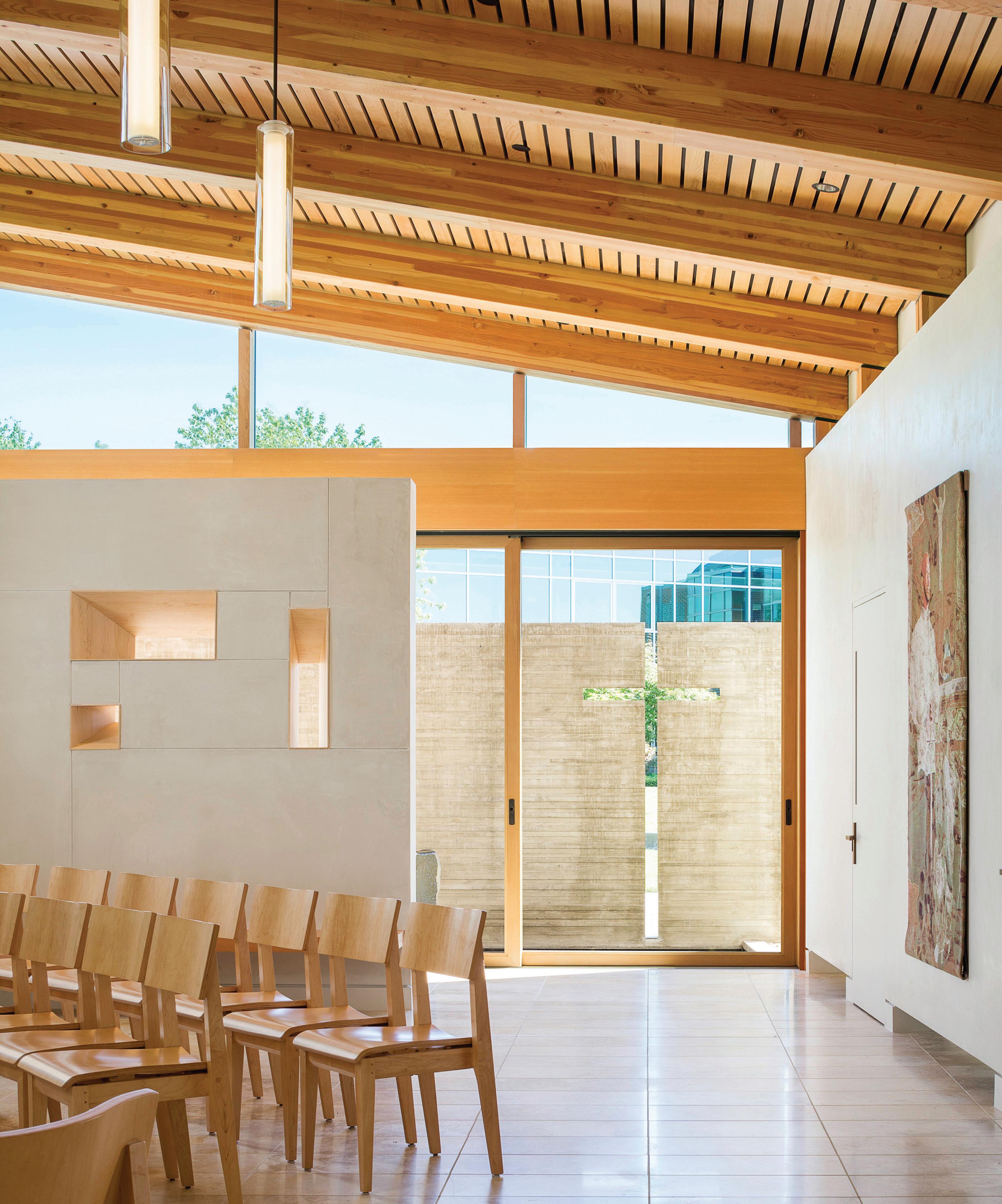The inherent functional, aesthetic, and healing qualities of wood were essential in crafting a warm and inviting environment for contemplation and mindfulness. Seating in the chapel is simple molded wood chairs, which are beautiful, highly durable, and comfortable.
