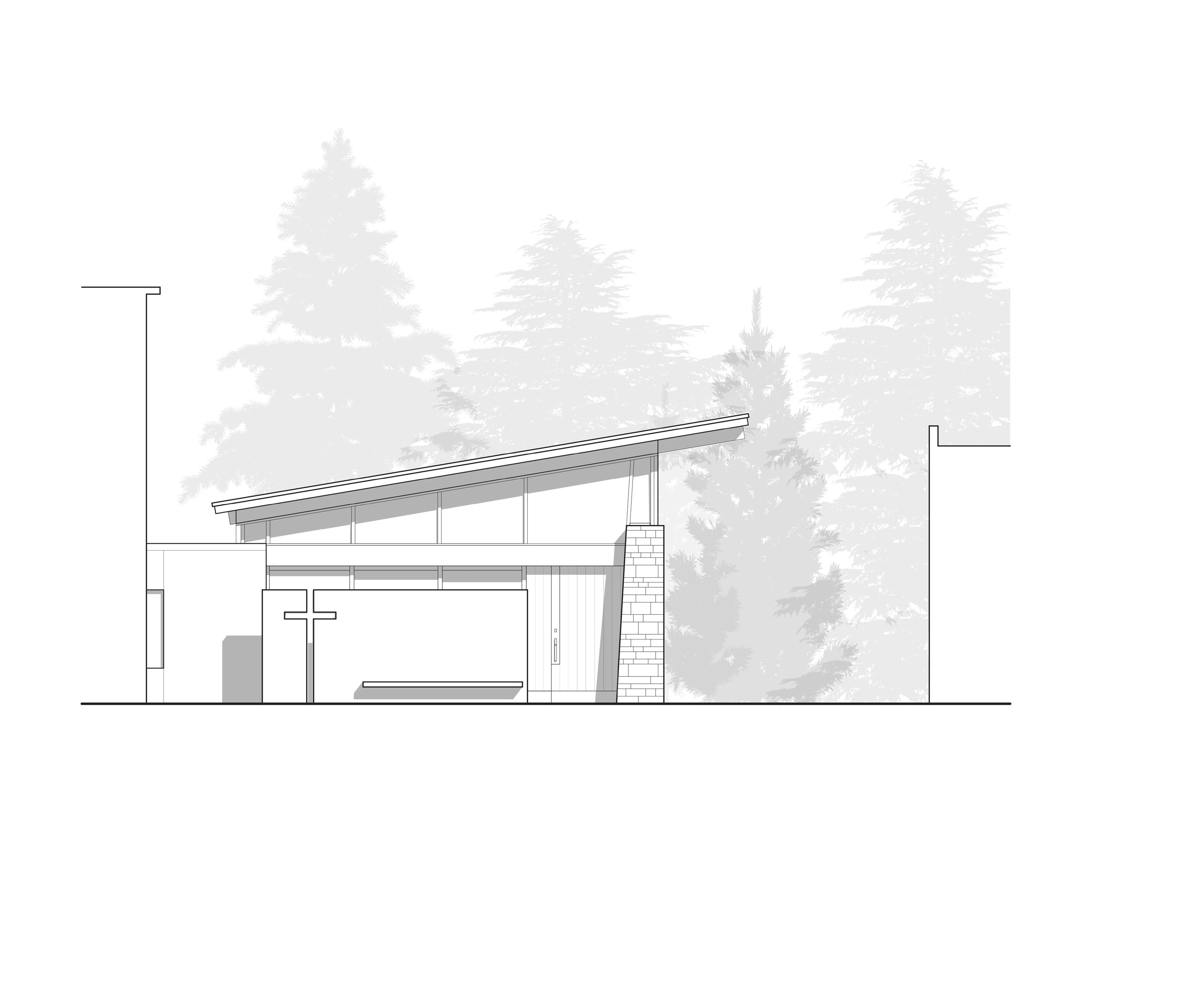 The chapel takes advantage of the steep site to immerse visitors in the canopy of existing trees. In winter months, this prospect frames views to Portage Bay.