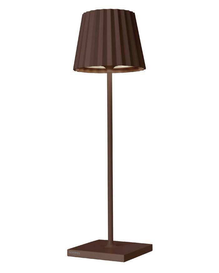 TROLL - la lampe de table d’extérieur avec son abat-jour plissé reconnaissable entre mille. Fabriquée en aluminium et revêtue de divers coloris et motifs, la lampe TROLL peut être utilisée à l’intérieur et à l’extérieur grâce à la classification IP54. Les puissantes batteries offrent jusqu’à 24 heures de lumière sans fil. Le capteur tactile situé sur la partie supérieure de la lampe permet de faire varier l’intensité lumineuse en continu et de choisir entre deux couleurs de lumière blanc chaud. La station de charge fournie permet de recharger la lampe TROLL en un tour de main.