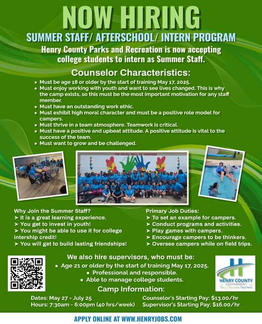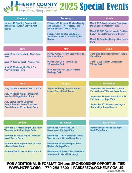 Spring is a season of growth, new beginnings, and exciting opportunities. This year, we are taking it to the next level! Henry County Parks and Recreation is thrilled to introduce an expanded lineup of programs and events designed to inspire, engage, and bring our community together.