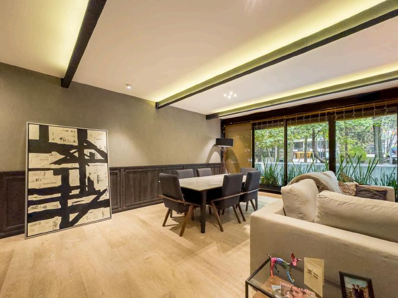 Pensado para el máximo confort, el diseño de iluminación, creado por un ingeniero especializado, realza cada espacio de forma armoniosa, creando ambientes que invitan al confort y el disfrute. El departamento también cuenta con un family room y un cuarto de servicio que añaden practicidad a la disposición, ofreciendo áreas versátiles para el día a día Las terrazas privadas en la sala y en las recámaras proporcionan espacios de conexión con el exterior, ideales para momentos de calma y contemplación