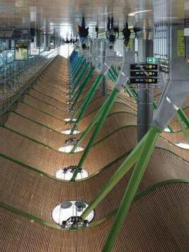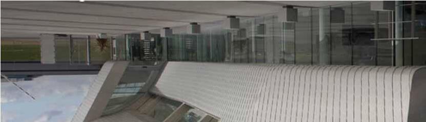 The building is roughly 100m by 500m with the roof being clad in some form of corrugated ium and the walls in glass and some form of aluminium panelling. The roof structure is ma trusses that utilise a space frame like make up to spread the force applied, they are suppo large columns (two at either end).