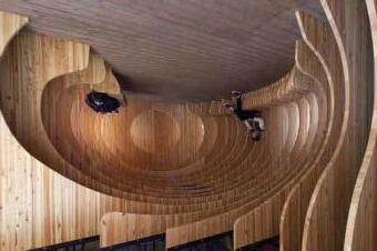 - The smaller wooden section has a single-story height and houses the individual offices for the workers.