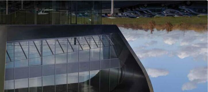 - Due to the climate conditions, the glass offered a good exterior solution aswell as reflecting the surrounding environment which makes the building adopt a chameloan effect