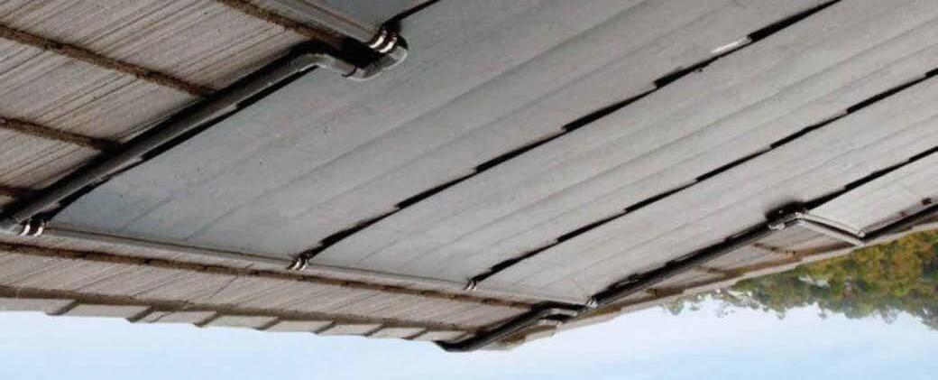 - The roofing product also extends way beyond the end frames to create massive overhangs that increase the protected sheep handling areas.