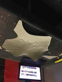 - the ceiling is industrial acoustic suspended baffles made out of melamine