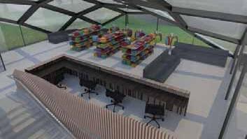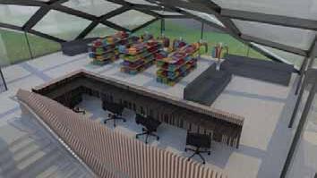 design is the library, a key study space that distinguishes itself with a large, sculpted façade. This intervention creates a distinct atmosphere within the building, offering an inspiring study while maintaining the sense of enclosure and privacy provided by the brickwork on