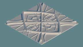 This complex topology was then rendered, tessellated with a selfdesigned tile inspired by Louis Sullivan s panels of ornament, and with the intention of creating something in line with Emanuel Sayrach s interiors.