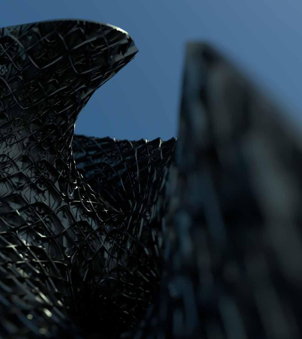 This project is an exercise in complex topology modelling and rendering. It is a replication of Marc Fornes' pavilion design Minima Maxima, made through Rhino SubD. It’s tiled with a Louis Sullivaninspired panel, also created through SubD and tessellated using Grasshopper, and finally rendered through V-Ray.
