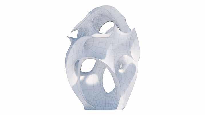 The replication of this specific topology was complex in itself, with no flat surface or clear starting point, and complex junctions that are all part of and within the same surface. The project manages to be both enclosed and entirely exposed, with no inside or outside just sides on a surface