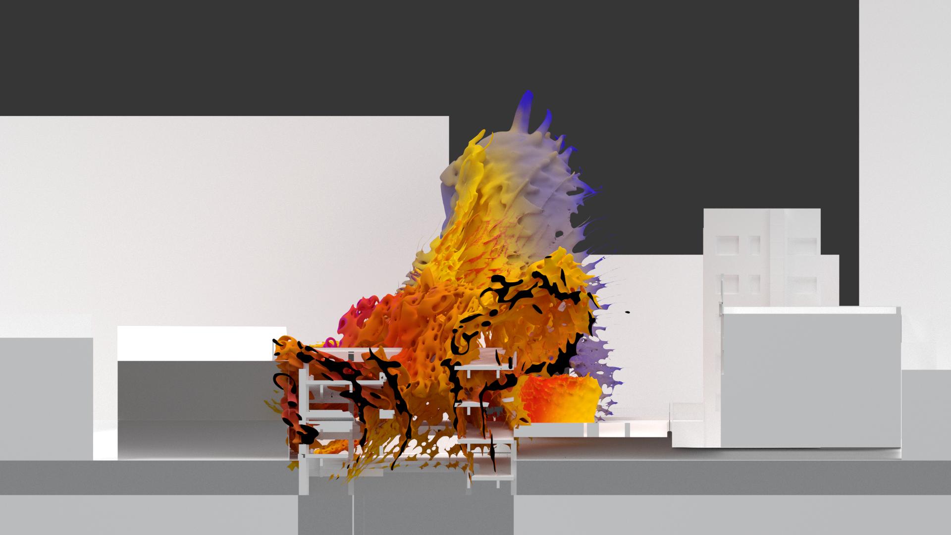 was the outcome an 8-week intensive studio called Narranome. an intervention into existing car park. studio called for interrogation of the surrounding community context, as well as external narrative which became a driver the design. This intervention is made up of aggregated components made through Rhino SubD aggregated through Grasshopper. This Rhino model was then sculpted coloured through ZBrush and finally rendered in V-Ray.