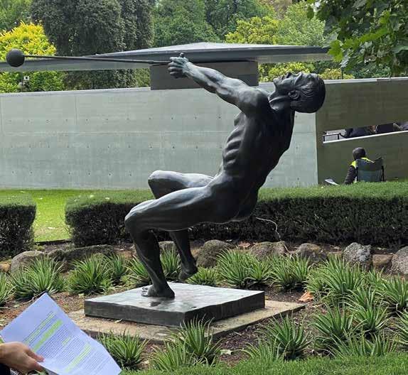 Hammer thrower is an interesting work, not only for its artistic show of physics. The tension in the throwers body, the implied motion, the opposing forces in seemingly perfect balance. It’s placement by the road, giving the appearance that the thrower is swinging the hammer as it should be as you watch the work while driving by. Beyond its artistic form is its provenance, being rented by the city of Melbourne from Rio Tinto who had commissioned the artwork for their head office. The dynamic of a city renting from such a powerful organisation, the government almost positioning itself as a customer. The art being set in a place that it was intended to be and the problems associated. It’s original intended site is probably tied into its vandalism problem, with the hammer having been frequently stolen leaving the thrower seemingly mid way through falling. The fact that this gave way to artistic intervention with the hammer soon being augment into a glode and the statue renamed ‘atlas’ and new meaning, with big business having the world on a string. Being placed in public and becoming public art. This is a living artwork, not intended as one but a show of a true reaction, a true dialogue between the work and the public.