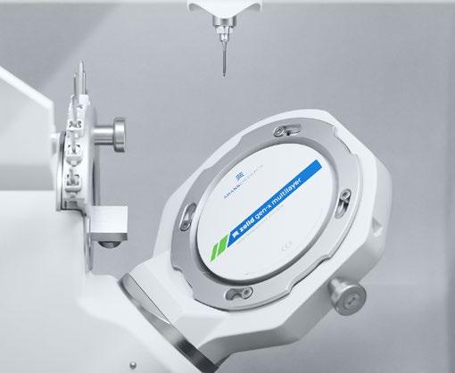Der magnetische, RFIDunterstützte 11er Werkzeugträger macht das Fräserhandling zum Kinderspiel – per Plug&Play können eine unlimitierte Anzahl an Fräsern einfach eingebracht werden. Intelligent vorbestückt können viele Materialien und Indikationen ohne Wechsel verarbeitet werden.