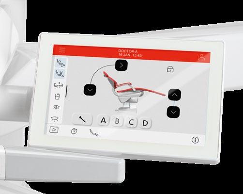 Bei jedem Eingriff kann sich der Arzt auf die fortschrittliche Schnittstelle mit berührungsempfindlichem 7-Zoll-Display verlassen. Er kann die integrierten System sowie die Bewegungen des Behandlungsstuhls und der Instrumente steuern, die Parameter einstellen und diese für jede Disziplin anpassen: