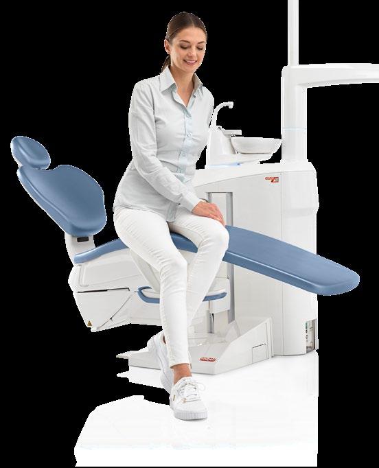 Die Sliding-Funktion entbindet den Zahnarzt von der Notwendigkeit, die Lampe und die Instrumente während der Behandlung neu positionieren zu müssen, sodass der Arbeitsbereich keinen Änderungen unterliegt. Die Bewegungen von Rückenlehne und Sitz sind synchronisiert. Dadurch wird praktisch mehr Arbeitsraum in der 12-UhrPosition gewonnen.