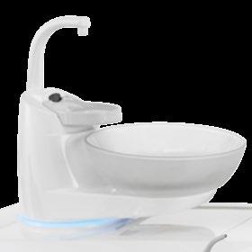 Das System für die Mundglasfüllung verfügt über einen automatischen Sensor für den Füllvorgang. Dank der motorisch angetriebenen Speischale sind die Spülvorgänge und die Behandlungsstuhlbewegungen miteinander synchronisiert.