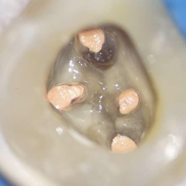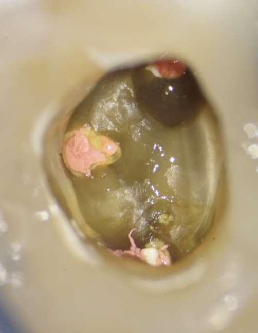 Abbildung 2: Blick auf das mesiale Kanalsystem nach Präparation