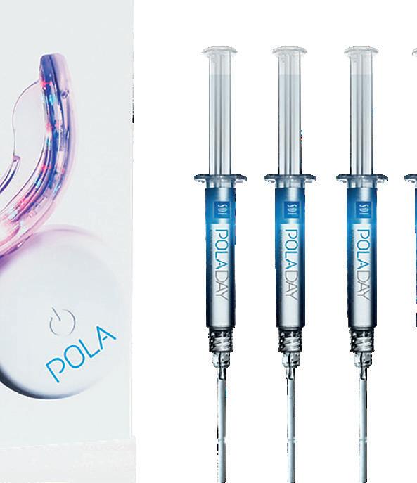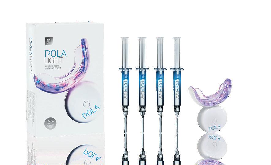 ZAHNAUFHELLUNG Art.-Nr. 7700985 POLA LIGHT PACKUNG • 1 Pola LED-Mundstück • 4 x 3 g POLA DAY 6 % Wasserstoffperoxid Zahnaufhellungsgel • 1 USB-Ladekabel Gebrauchsanweisung Art.-Nr. 7750073 € 1.699,00 POLA BLEACH PACK Paket Aktion Preis bei Einzelkauf €2.564,00 POLA STÄNDER 2 5+DISPLAY NACHFÜLLPACKUNG 6 % HP 3 g - 20 Spritzen Kit DAY Art.-Nr. 7700094 Display