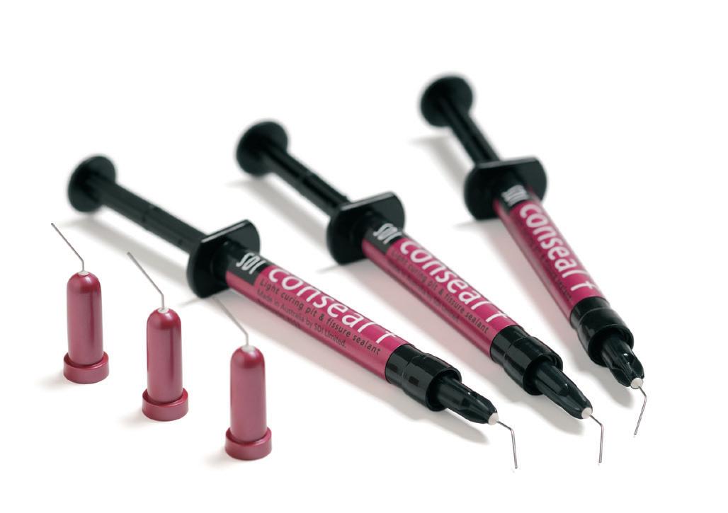 Conseal f ist ein Fissurenversiegler von niedrigster Viskosität. Durch diese ideale Eigenschaft fließt Conseal f schneller und tiefer in die zu behandelnden Grübchen und Fissuren. Die Kanüle des Applikationstips, dessen Öffnung nur ein Drittel der Größe anderer Tips beträgt, ermöglicht gleichmäßige Versiegelung, da er in die kleinsten Grübchen und Fissuren eindringen kann. Im Conseal f Kit ist das Super Etch LV, das durch seine niedrige Viskosität tief und gleichmäßig in Grübchen und Fissuren eindringt.