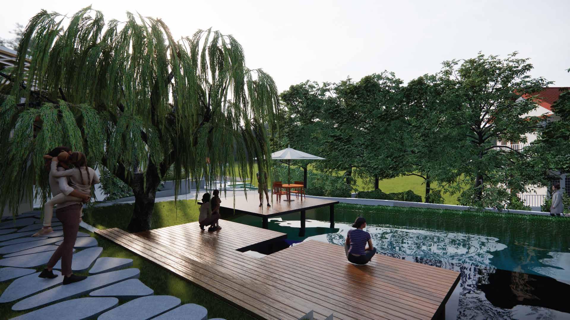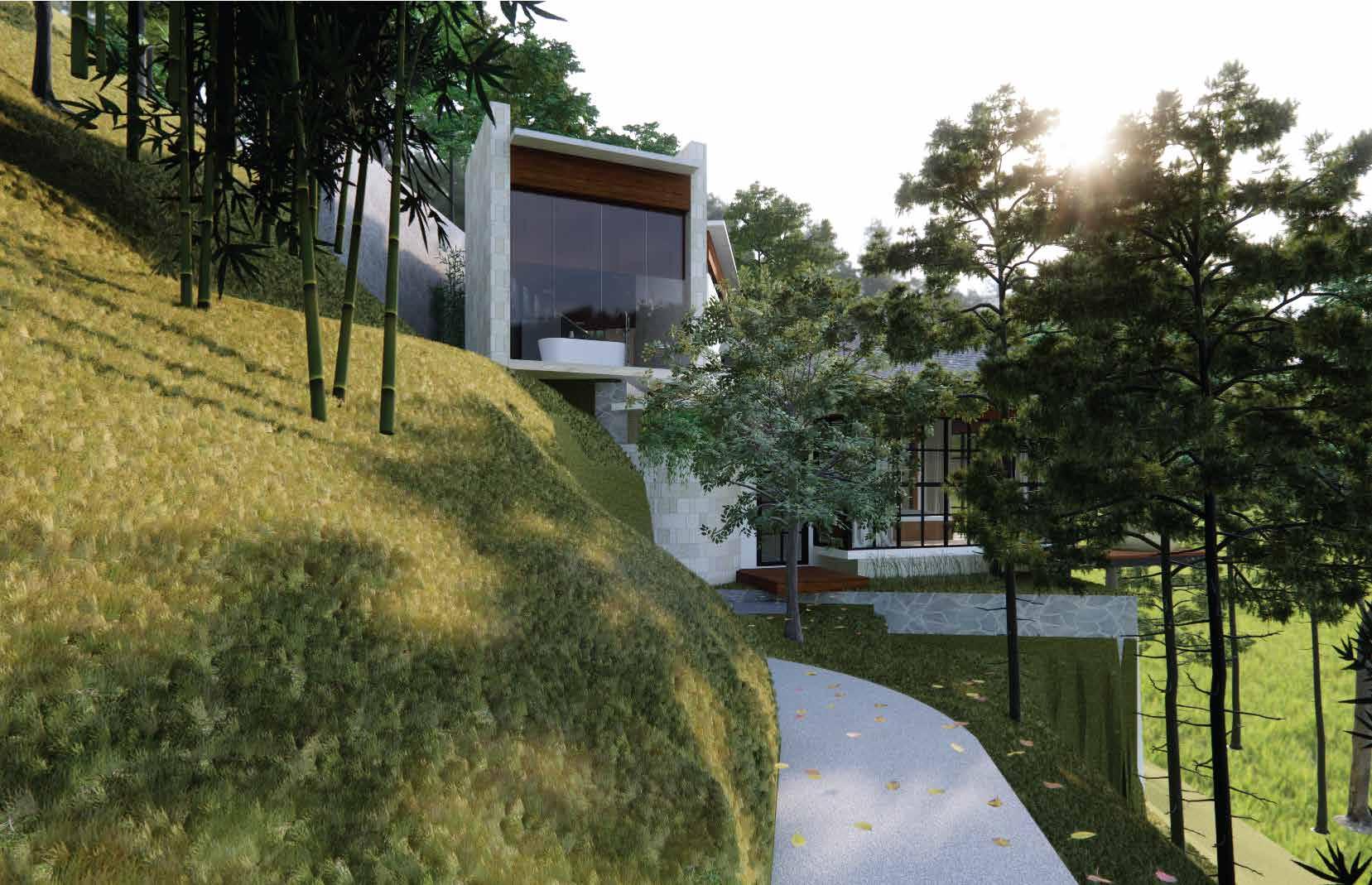 Kayu Manis Villa is part of Rumah Tengah Sawah Resort. The planned location is situated in the middle of a tree-dense area with a fairly steep slope. The land preparation involves creating two-tiered terraces, with a vertical distance that is quite extreme (3 meters).