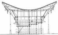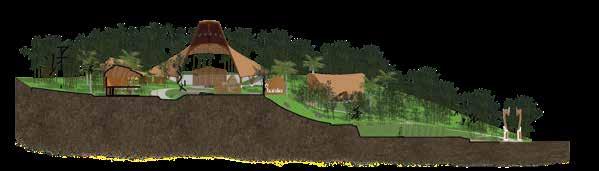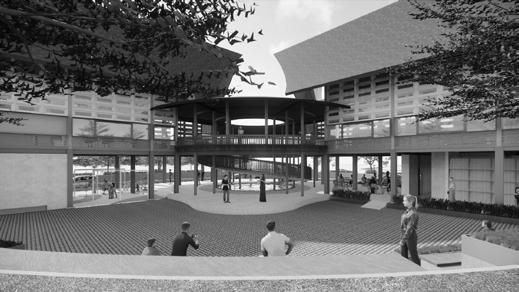 The proportional shape of the Tongkonan roof is combined with the circular shape of the Toraja ornament and implemented into the shape of theater building.