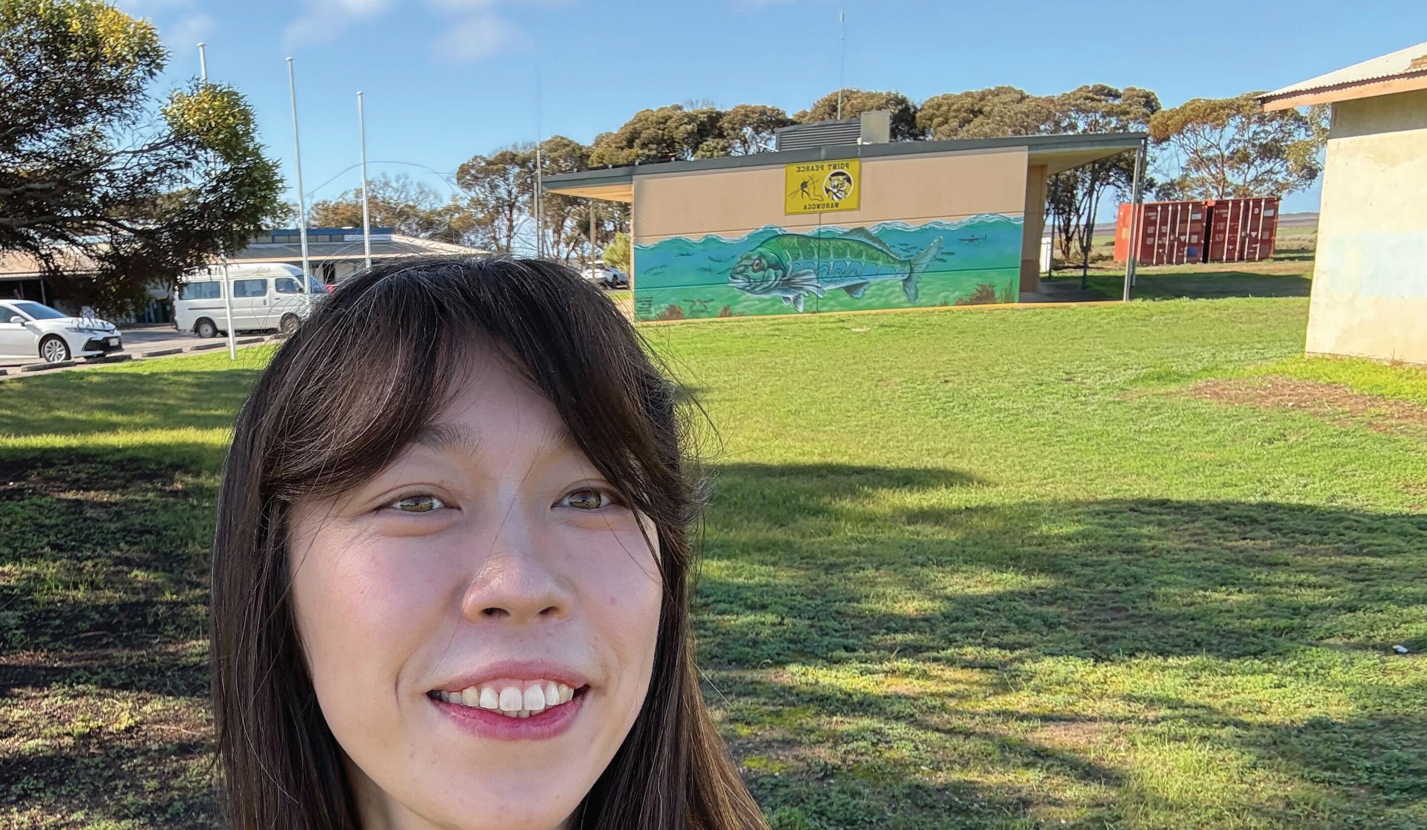 Clockwise: Parliament House glows green in 2023; Educator Yingbin in Point Pearce; and T-shirt painting at the Migrant Resource Centre