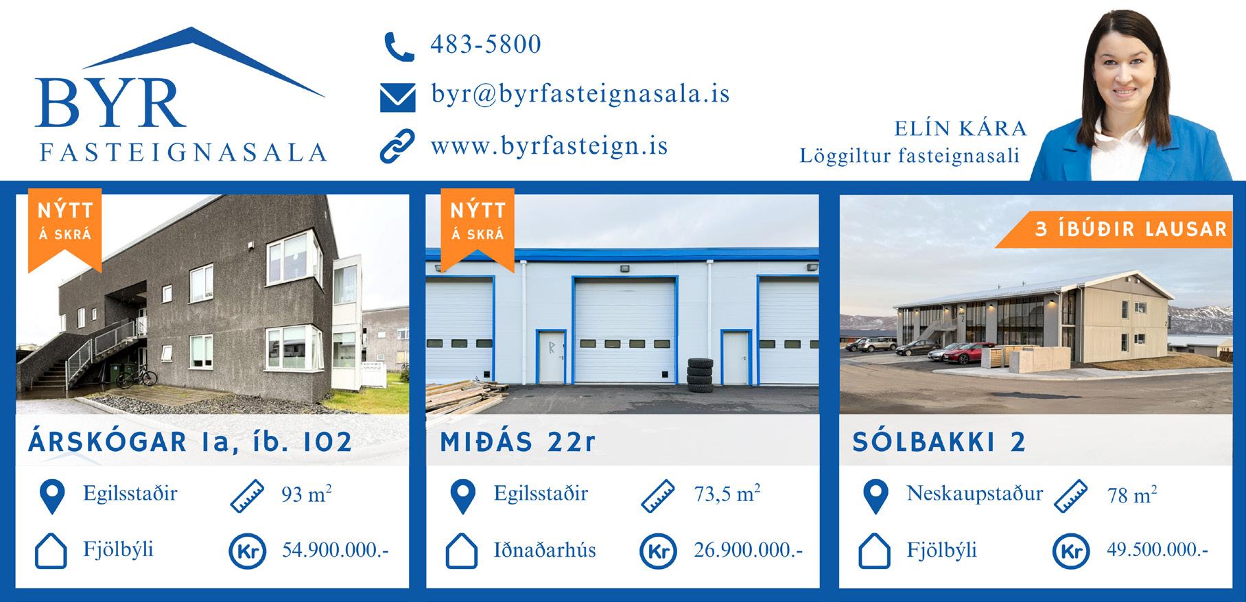 Snyrtileg og vel skipulögð þriggja herbergja íbúð á jarðhæð innst í botnlangagötu í Fellabæ, steinsnar frá bæði leik- og grunnskóla. Verð: 31 milljón.