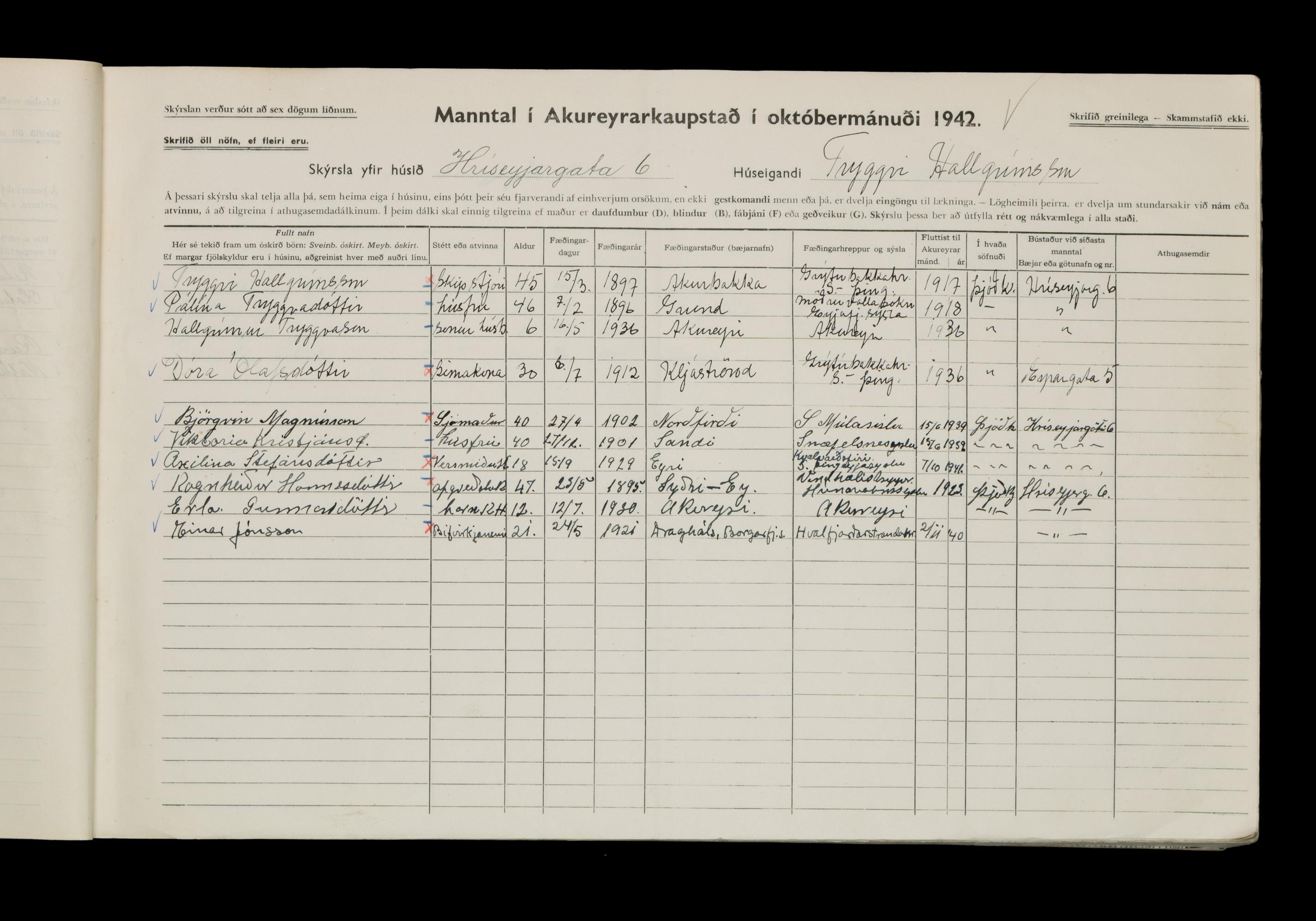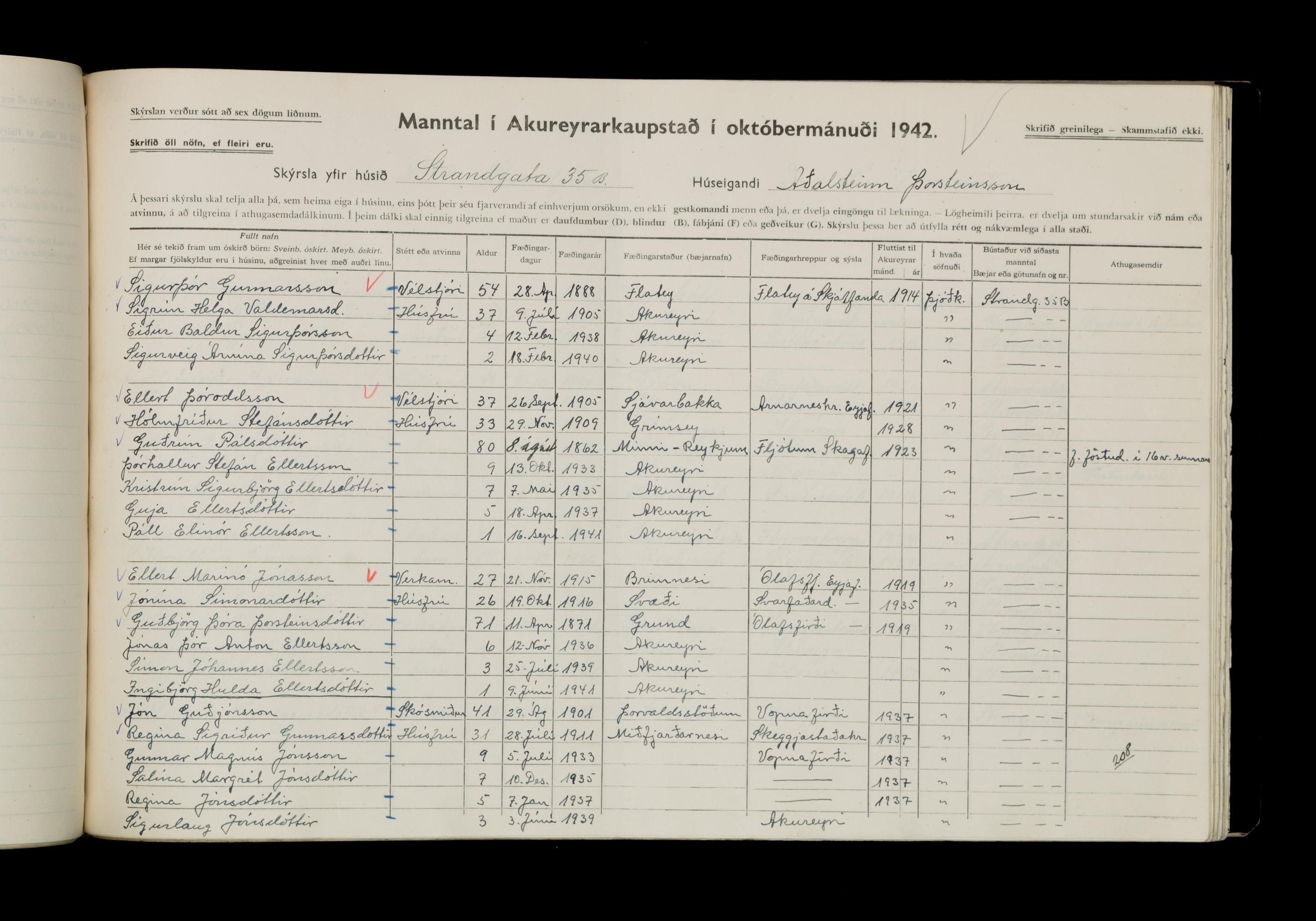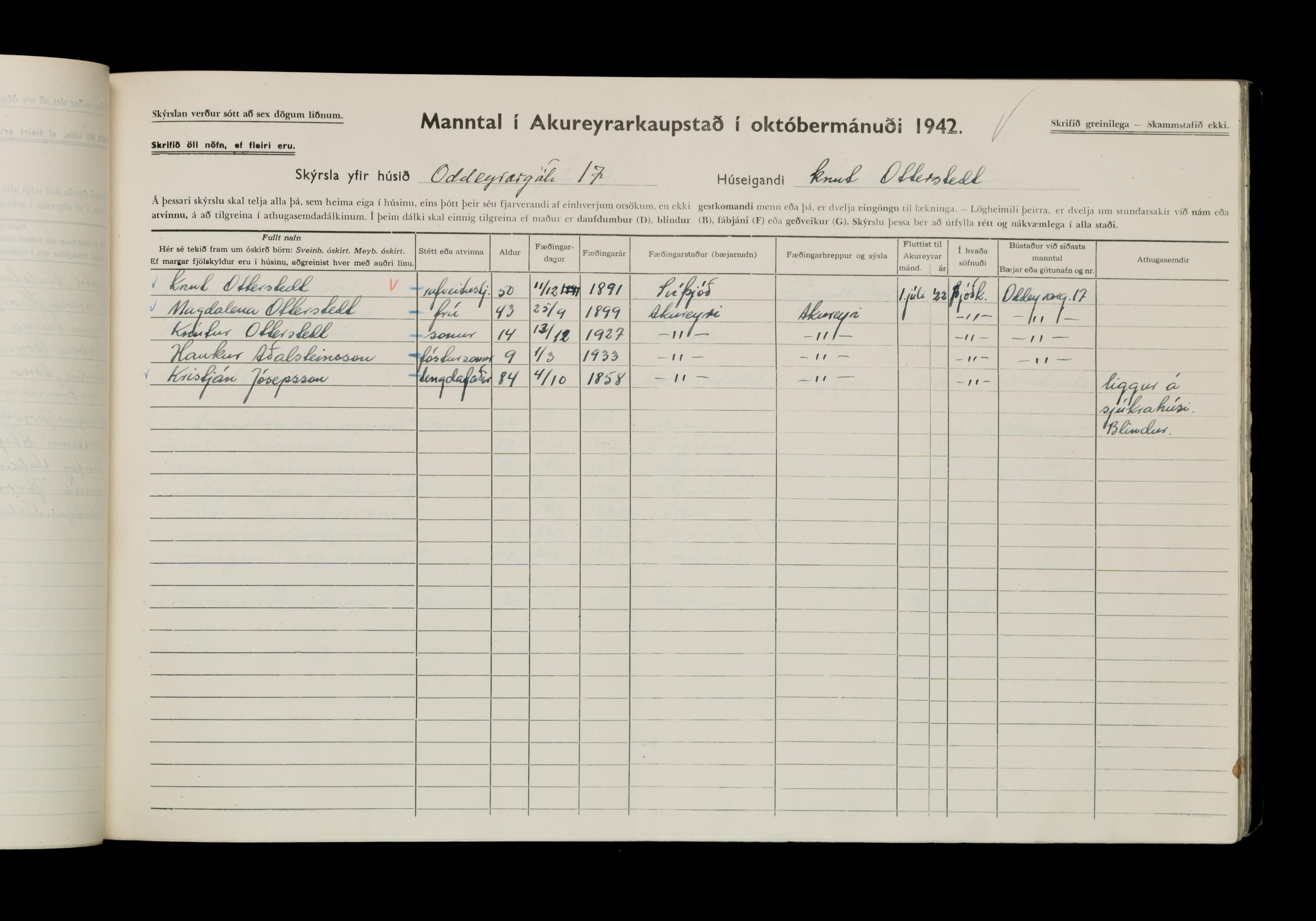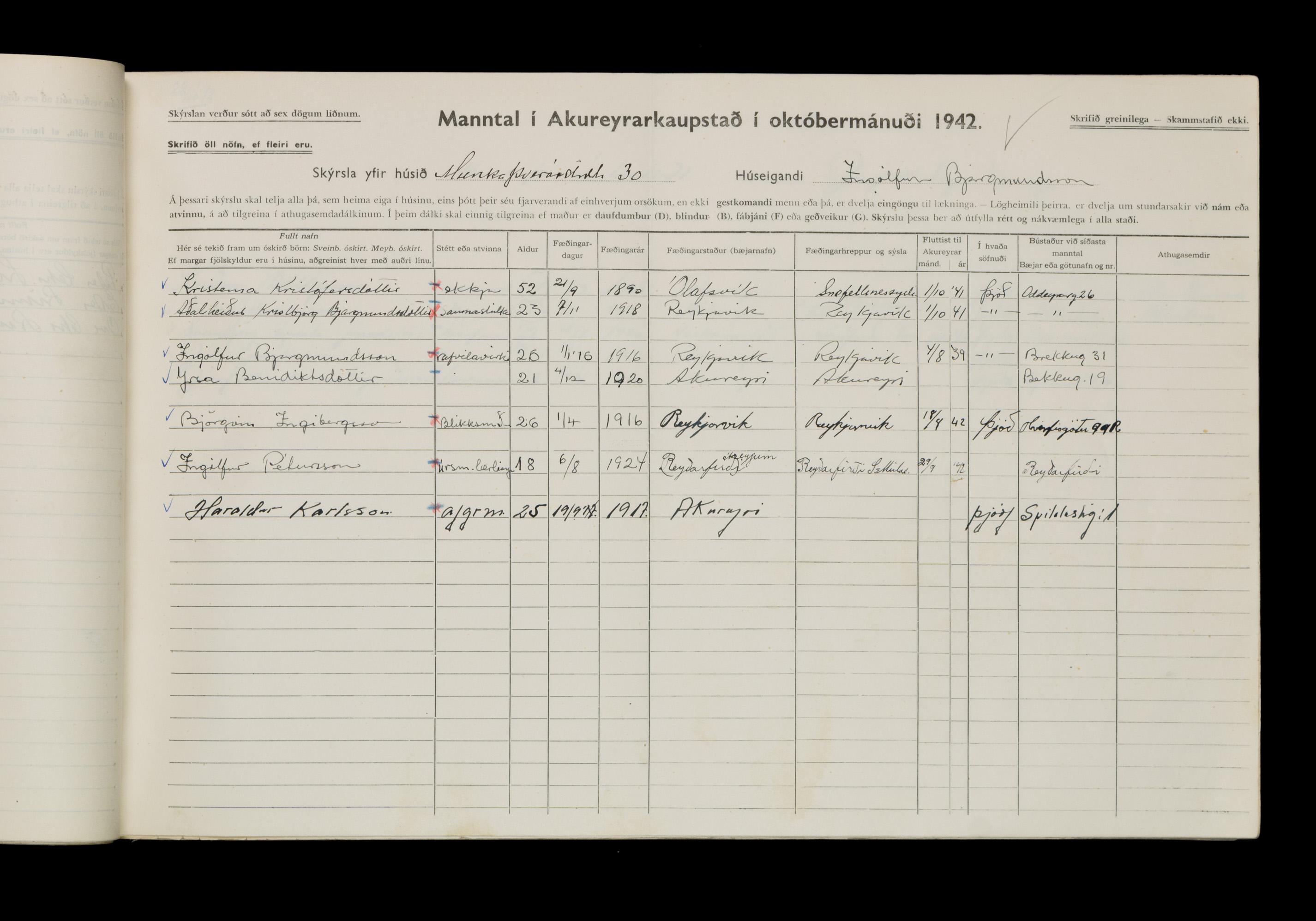 Manntal í Akureyrarkaupstað 1942 II
