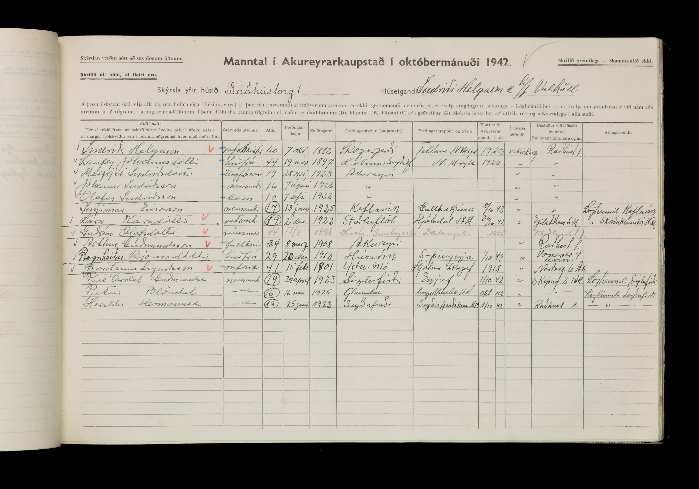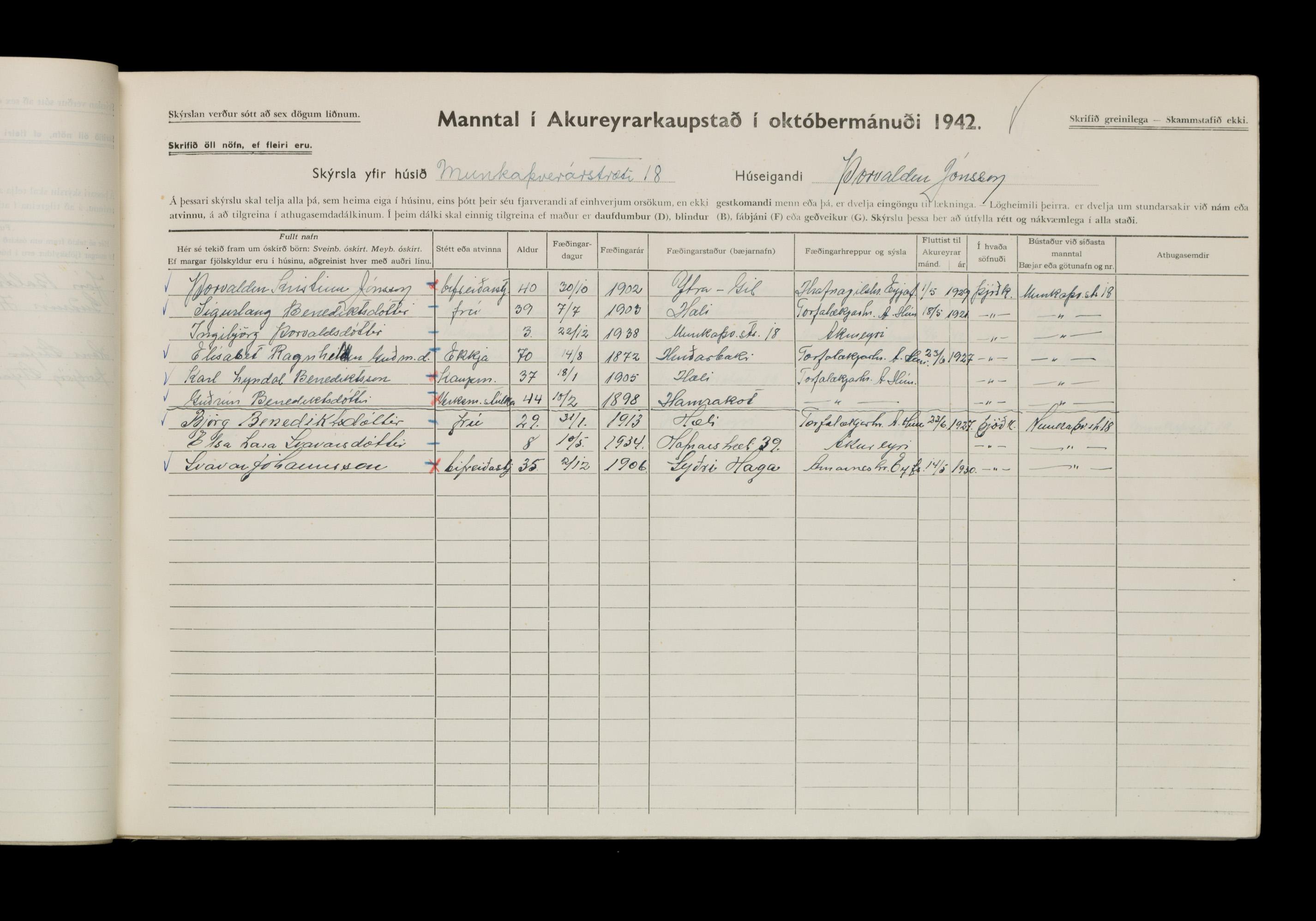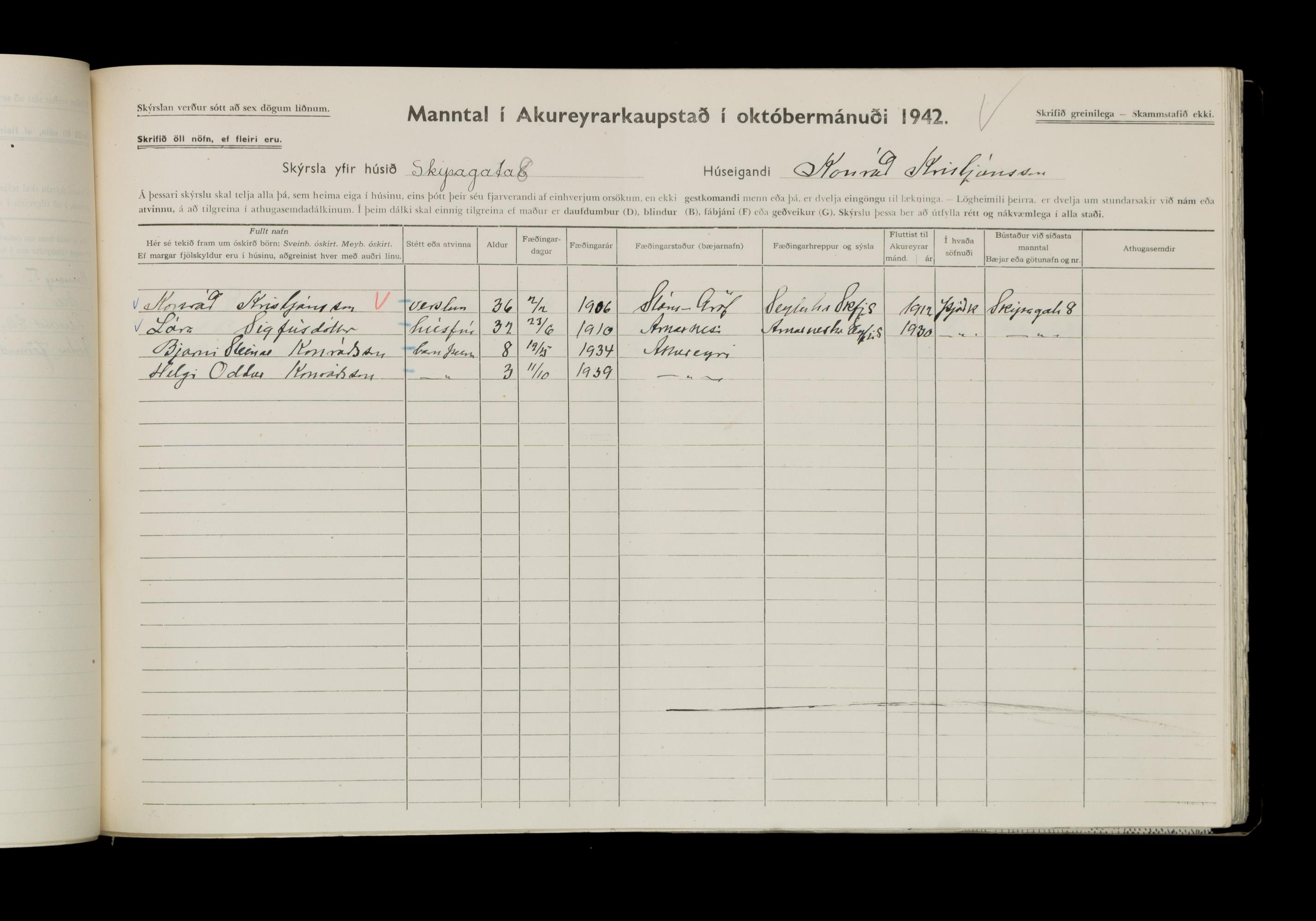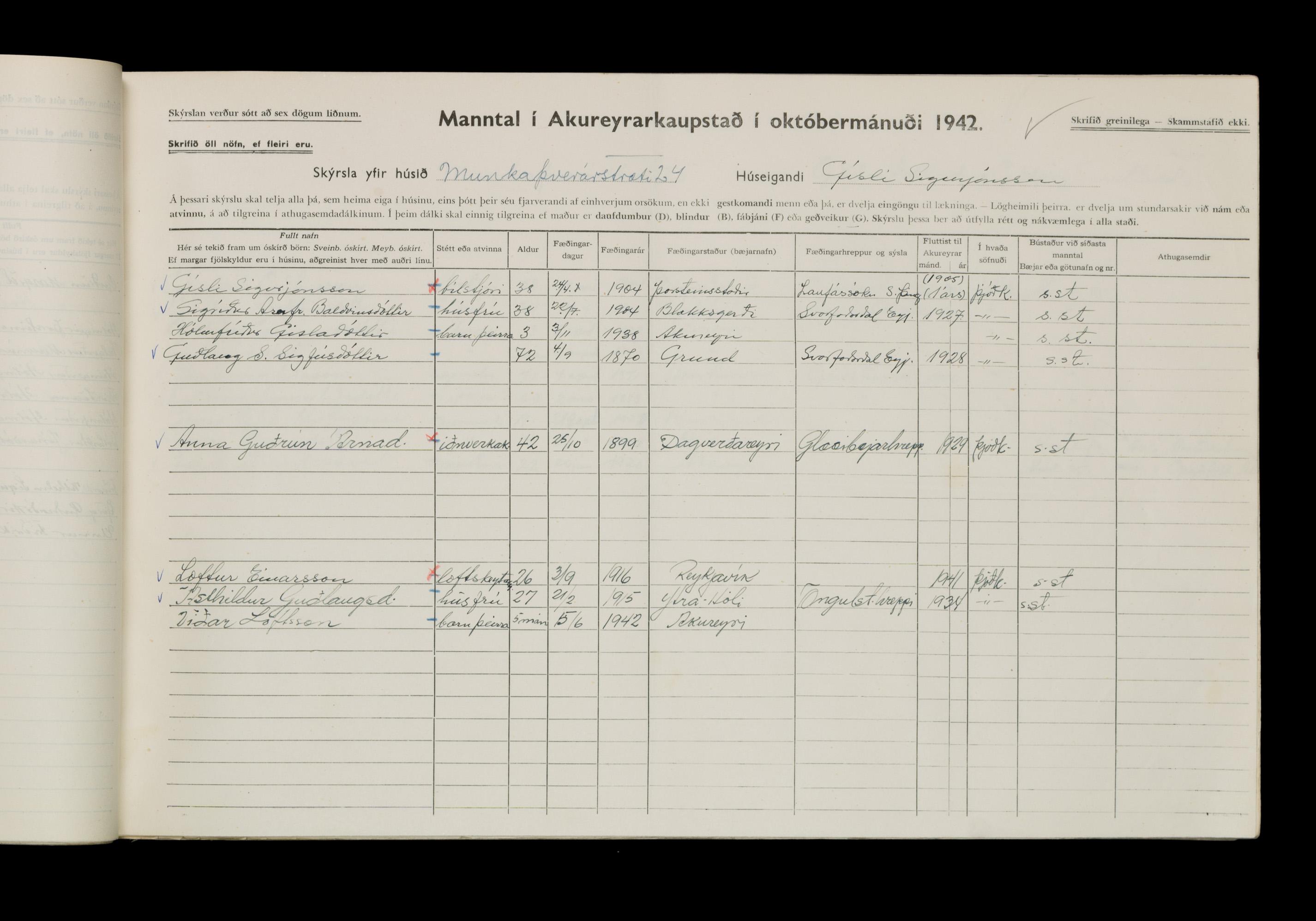Manntal í Akureyrarkaupstað 1942 II